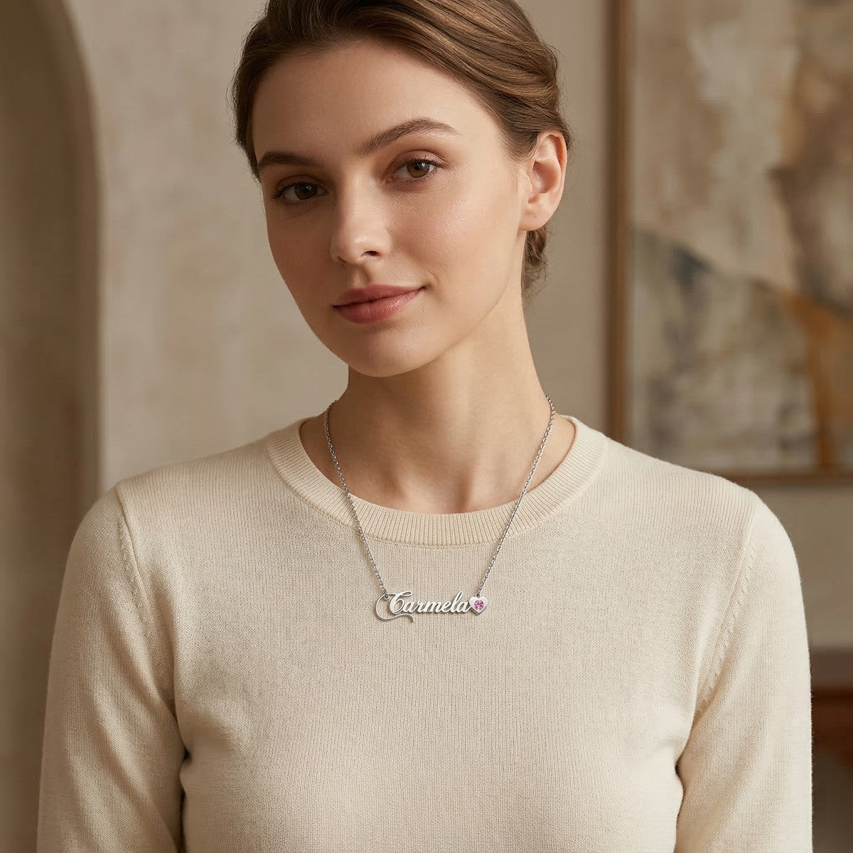 قلادة اسم شخصية باللغتين العربية والإنجليزية مع حجر الميلاد #3ZX