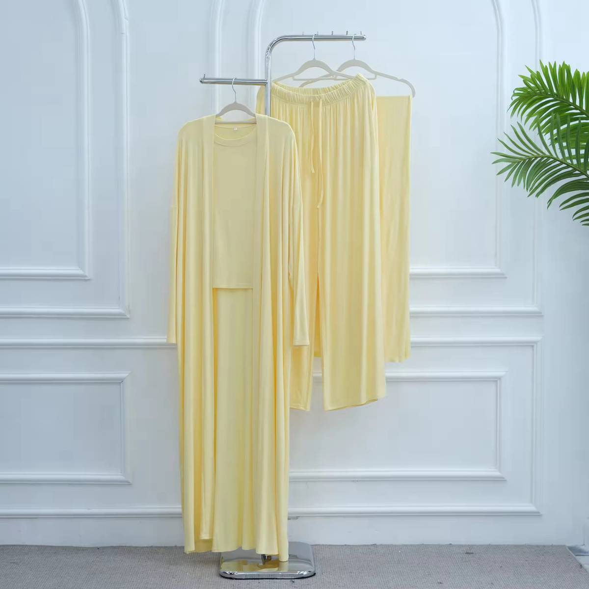 طقم ملابس نسائية مسلمة مكون من 3 قطع، بلوزة وبنطال من قماش المودال مع عباية مفتوحة #251076