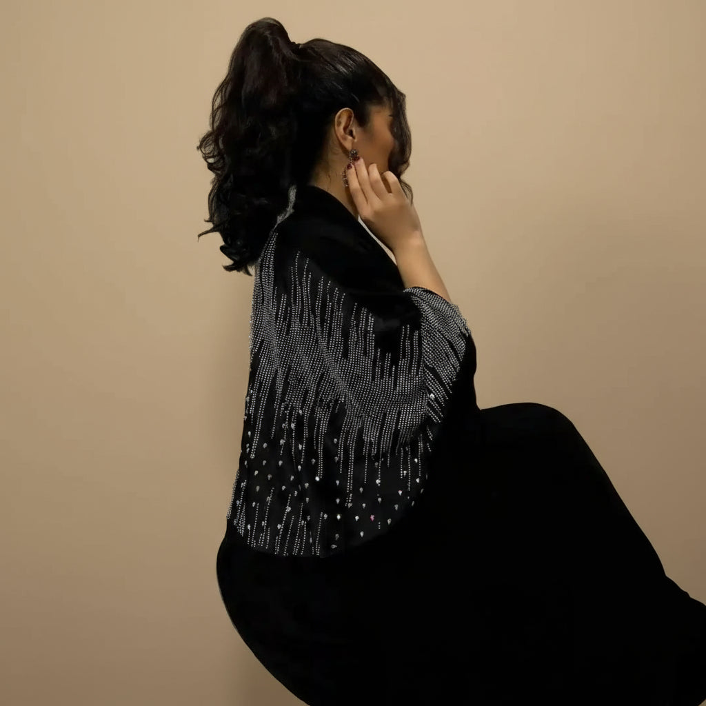 فستان عباية مفتوح من كارديجان مرصع بأحجار الراين للنساء المسلمات #25212
